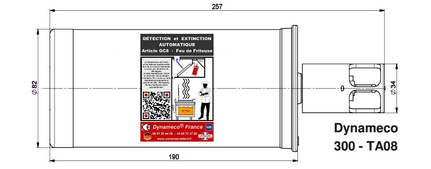 Un générateur Dynameco 300-TA08 est prévu pour protéger une zone de cuisson de plus ou moins 60 cm de côté.